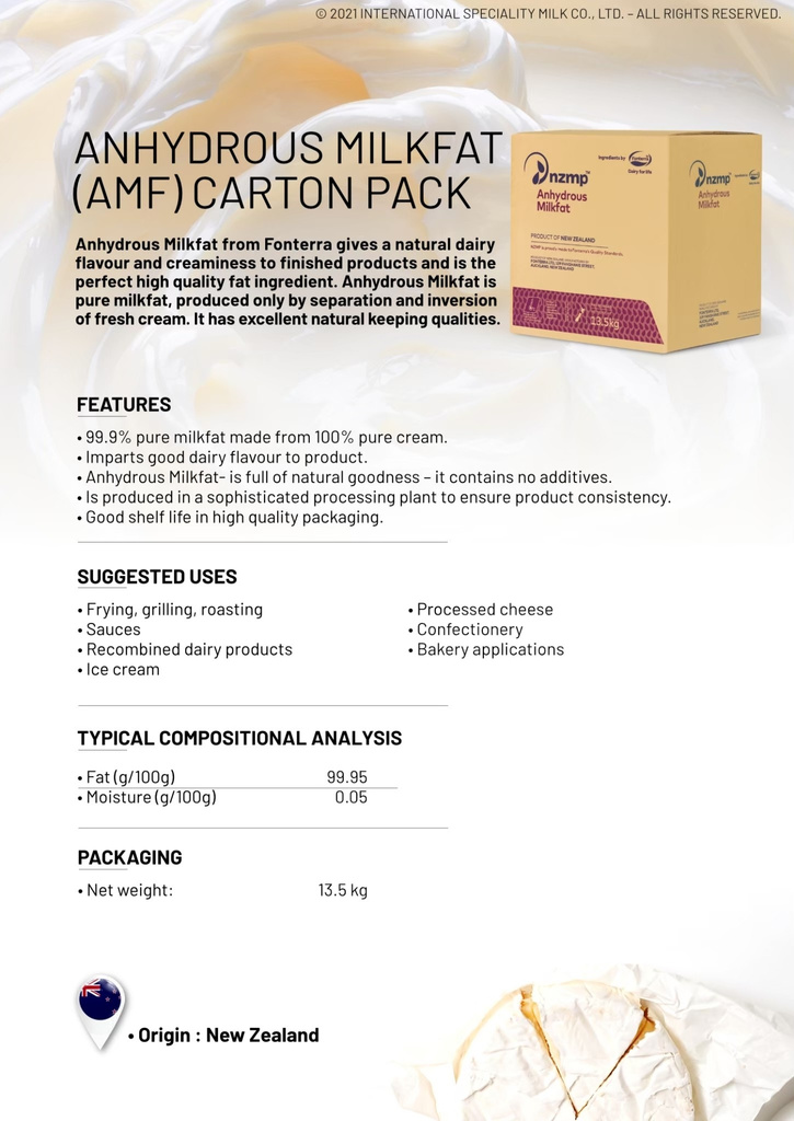 ANhydrous milkfat (AMf) carton pack