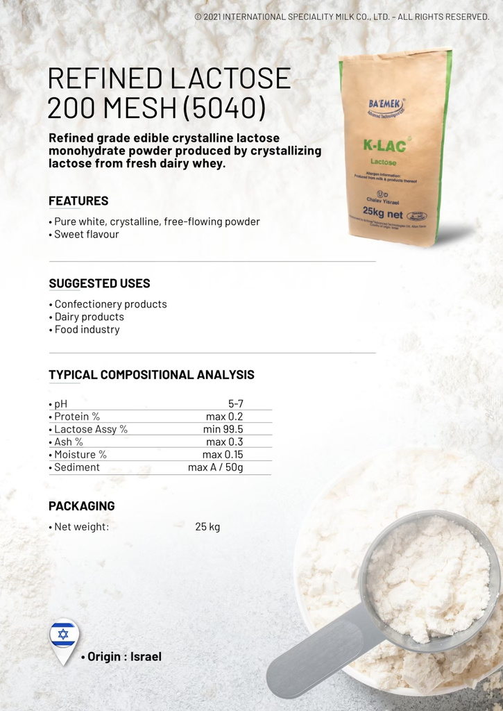 Refined lactose 200 mesh (5040)